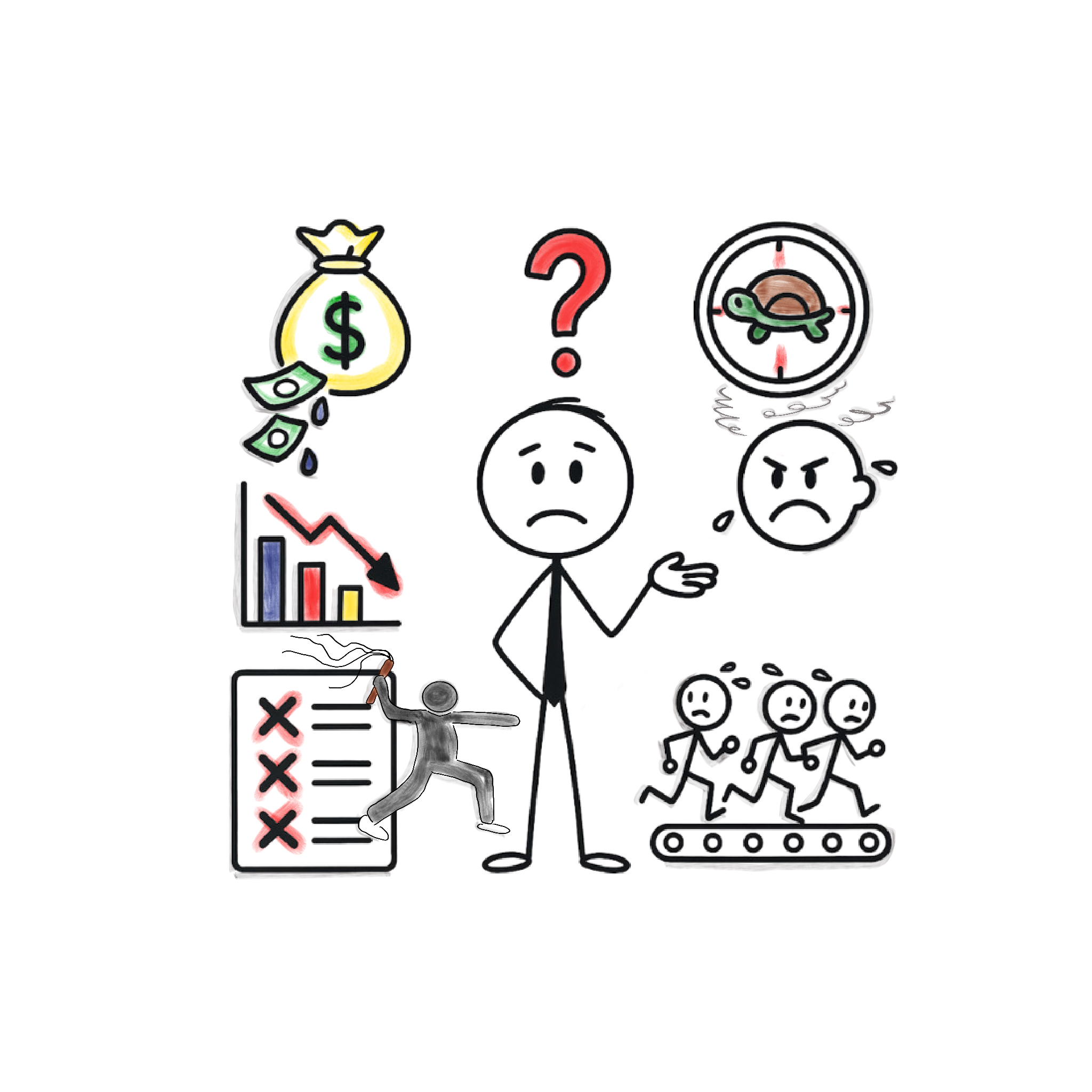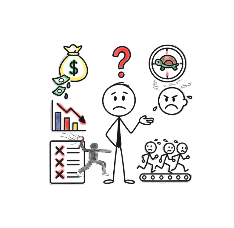 Fehlerlisten wachsen, Nacharbeit frisst Zeit, Kunden werden ungeduldig, die Performance sinkt drastisch.