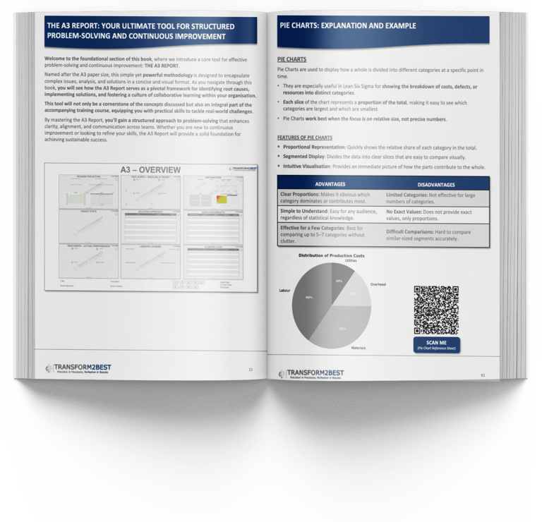 Du wirst nicht mit Konzepten allein gelassen. Du bekommst eine nachvollziehbare Struktur, die dich durch den Aufbau von Lean Six Sigma und durch strukturierte Problemlösung führt.