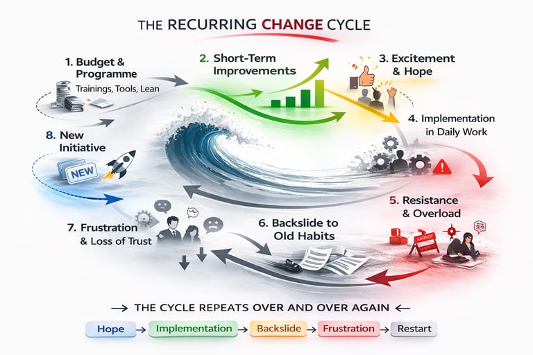 Every year, significant budgets are invested in improvement programs. Training sessions are booked, Lean initiatives are launched, structures are reorganised. And then something happens that many know all too well.