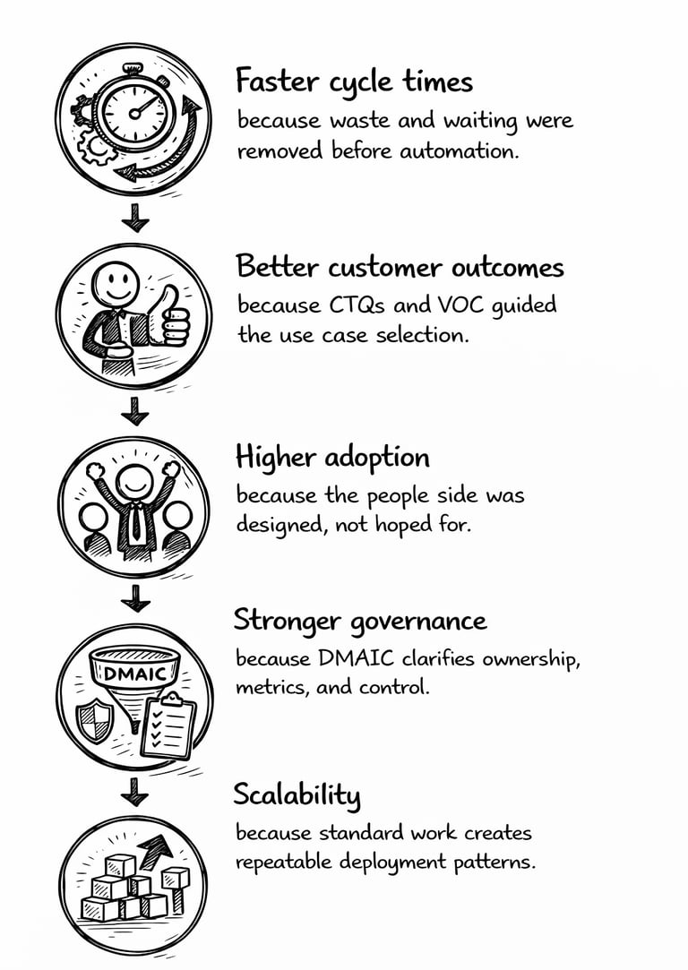 When Lean Six Sigma and AI are combined well, the advantage is not just speed. It is reliability.